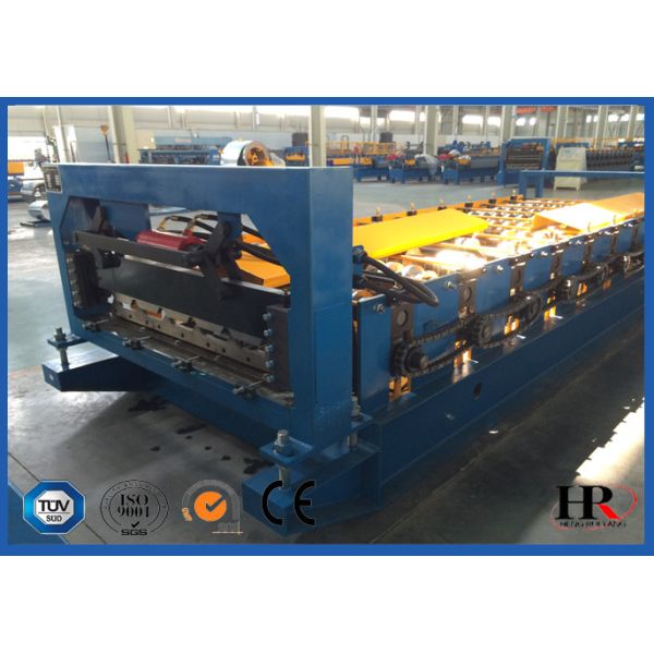 This kind of tile forming machine consists of a manual decoiler, feeding platform, main molding core, shearing mechanism, hydraulic station, computer control cabinet, step-pressed mechanism, high precision counter and driven system protective covering panel supporting table.
